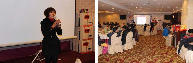 喬森企業(yè)宣傳片的播放拉開聯(lián)誼會(huì)序幕,接著,漳州藝源副總經(jīng)理在會(huì)上作了開場(chǎng)發(fā)言,她對(duì)所有的合作伙伴表示了感謝,同時(shí)對(duì)喬森未來在漳州的發(fā)展提出規(guī)劃和展望,并承諾2013年將在物流配送速度、活動(dòng)支持、物料支持、售后服務(wù)進(jìn)行改進(jìn)提升,通過優(yōu)勢(shì)的產(chǎn)品,優(yōu)質(zhì)的服務(wù),優(yōu)良的售后為經(jīng)銷商打造一個(gè)共同發(fā)展的平臺(tái)。
