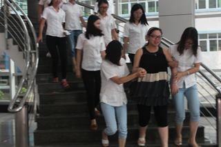 當日16時,消防演練正式開始。消防通道上方的火災報警器發出警報聲。演習模擬大樓由于電器設備故障引發火情,煙霧充滿整個樓層,在專業人員的指揮下,大家迅速沿著墻邊從消防通道內緊張有序地撤離,不到1分鐘,全部人員到達指定安全位置。